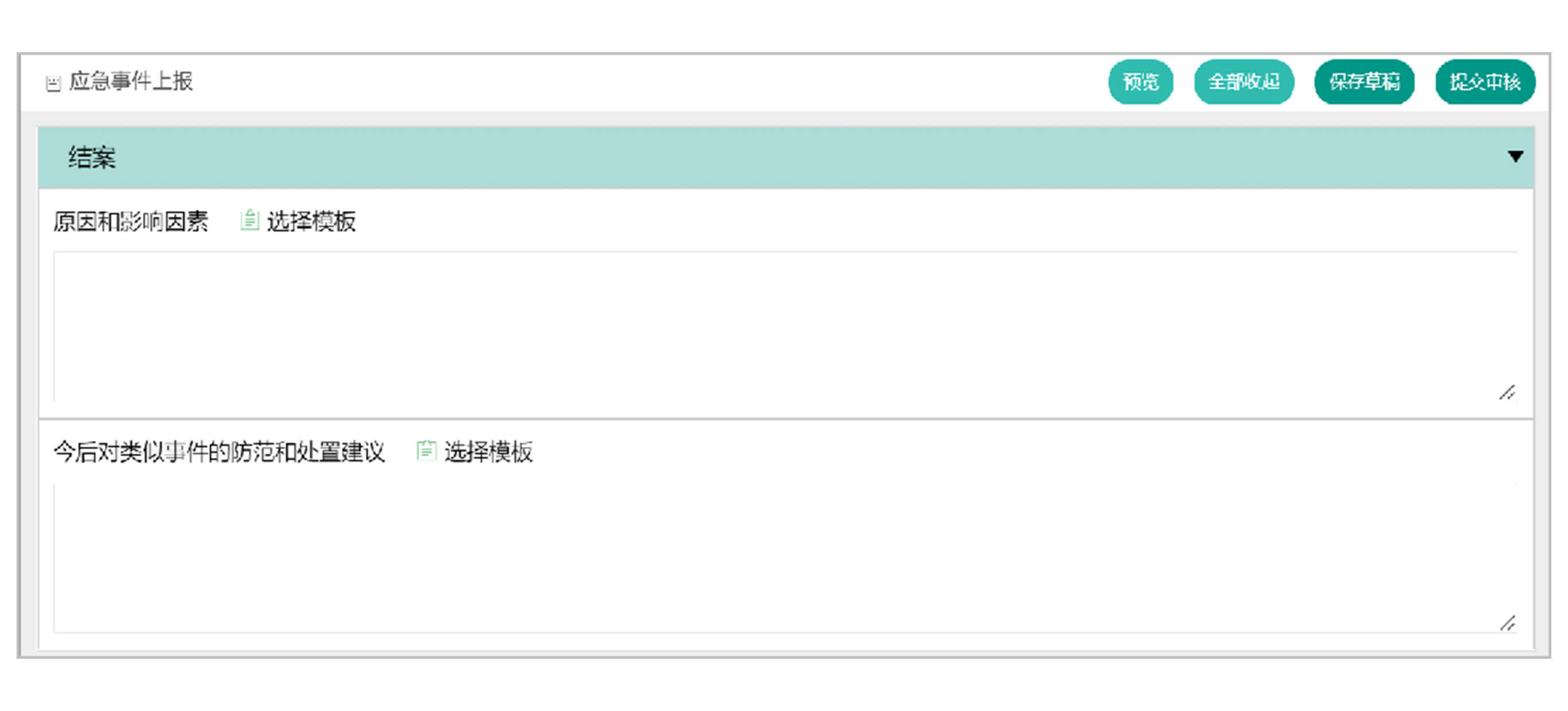 - 突发公共卫生事件结束后,系统支持对事件的发生和处理情况进行总结并保存处理结果,记录包括对分析其原因和影响因素的记录,以及今后对类似事件的防范和处置建议。